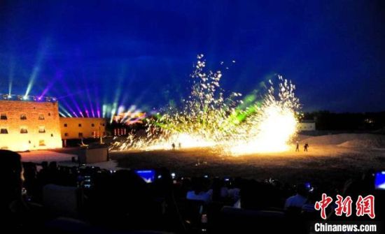 圖為沙漠實(shí)景劇《敦煌盛典》的演出現(xiàn)場(chǎng),觀眾在“穿越”古今的賞劇體驗(yàn)中感觸絲路文化?!】靛\虎 攝