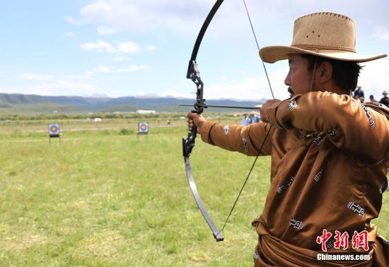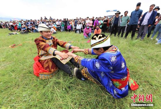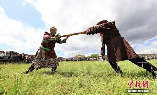 8月8日,甘肅張掖市肅南裕固族自治縣皇城鎮(zhèn)第十六屆民族文化旅游藝術(shù)節(jié)暨傳統(tǒng)體育運(yùn)動(dòng)會(huì)拉開(kāi)帷幕。賽馬、押加、拔棍、頂杠子、射箭、背垛子等一項(xiàng)項(xiàng)少數(shù)民族傳統(tǒng)體育運(yùn)動(dòng)項(xiàng)目,吸引上萬(wàn)觀(guān)眾觀(guān)看。近年來(lái),肅南縣將體育項(xiàng)目與歷史、民族、文化、旅游有機(jī)結(jié)合,打造民族體育節(jié)慶品牌和運(yùn)動(dòng)會(huì),使民族傳統(tǒng)體育發(fā)展增加了新的內(nèi)涵,逐步形成了全民健身品牌,影響力不斷擴(kuò)大。圖為參賽選手進(jìn)行拔棍項(xiàng)目比賽。 趙琳 攝
