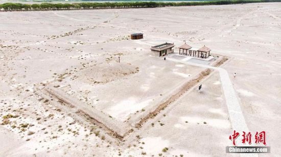 嘉峪關(guān)新城魏晉墓群六號墓是一座典型的三室墓,由前、中、后三個墓室組成。圖為7月中旬,六號墓航拍圖。高展 攝