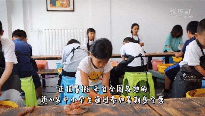 正值暑假,來自全國各地的近20名中小學生通過參加暑期夏令營,走進馬家窯彩陶文化遺址所在地甘肅省臨洮縣學習陶藝。