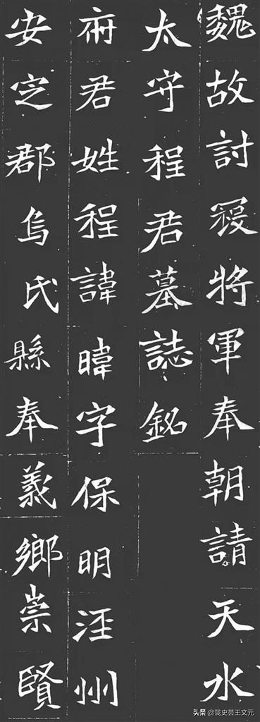 仔細(xì)一讀,發(fā)現(xiàn)了不尋常。第一行內(nèi)容就吸引了我的注意力:“魏故討寇將軍奉朝請?zhí)焖爻叹怪俱?rdquo;,原來是位天水太守,這可少見,能補(bǔ)充史料的不足。繼續(xù)下看,后面兩行,更加有意思了:府君姓程,諱暐,字保明,涇州安定郡烏氏縣奉義鄉(xiāng)崇賢里人也。這人是甘肅人??!