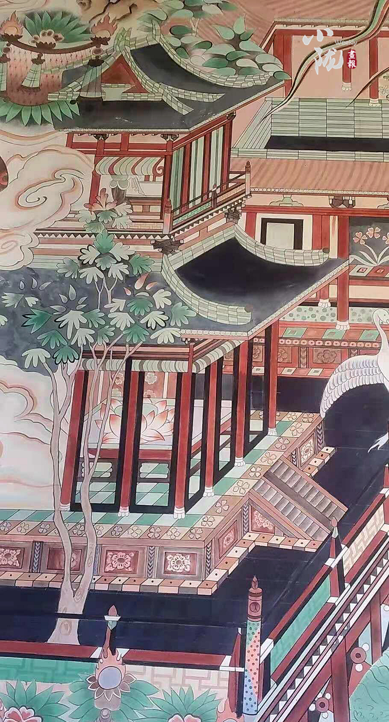大型臨摹復(fù)制敦煌壁畫《無(wú)量壽經(jīng)變》現(xiàn)身千年古剎鳩摩羅什寺,上演了一場(chǎng)跨越千年絲路的神奇邂逅,必將成為游客在鳩摩羅什寺游覽時(shí)的又一熱門打卡地。