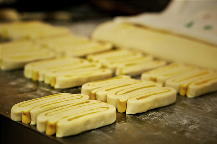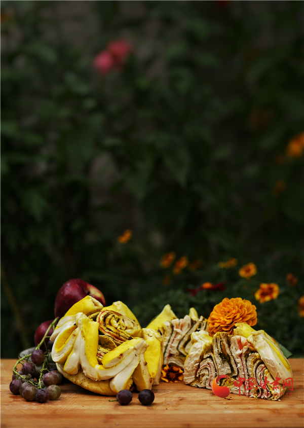 香豆、油酥、姜黃、紅曲、胡麻……最樸實(shí)的食材,最傳統(tǒng)的工藝,讓月餅在蒸汽中充分鼓脹,最終飽滿盛開。卷沿彎曲,狀似玫瑰。切開,內(nèi)里豐富,色彩斑斕,如同張掖丹霞,熠彩生輝,包羅萬象。(本網(wǎng)記者 宋芳科 通訊員 張文)