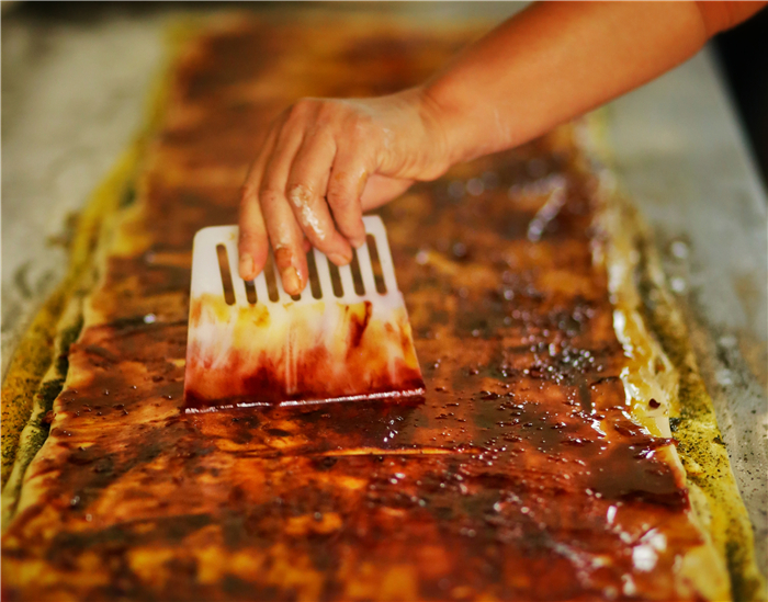 撒上胡麻油和面粉熬制成的油酥
