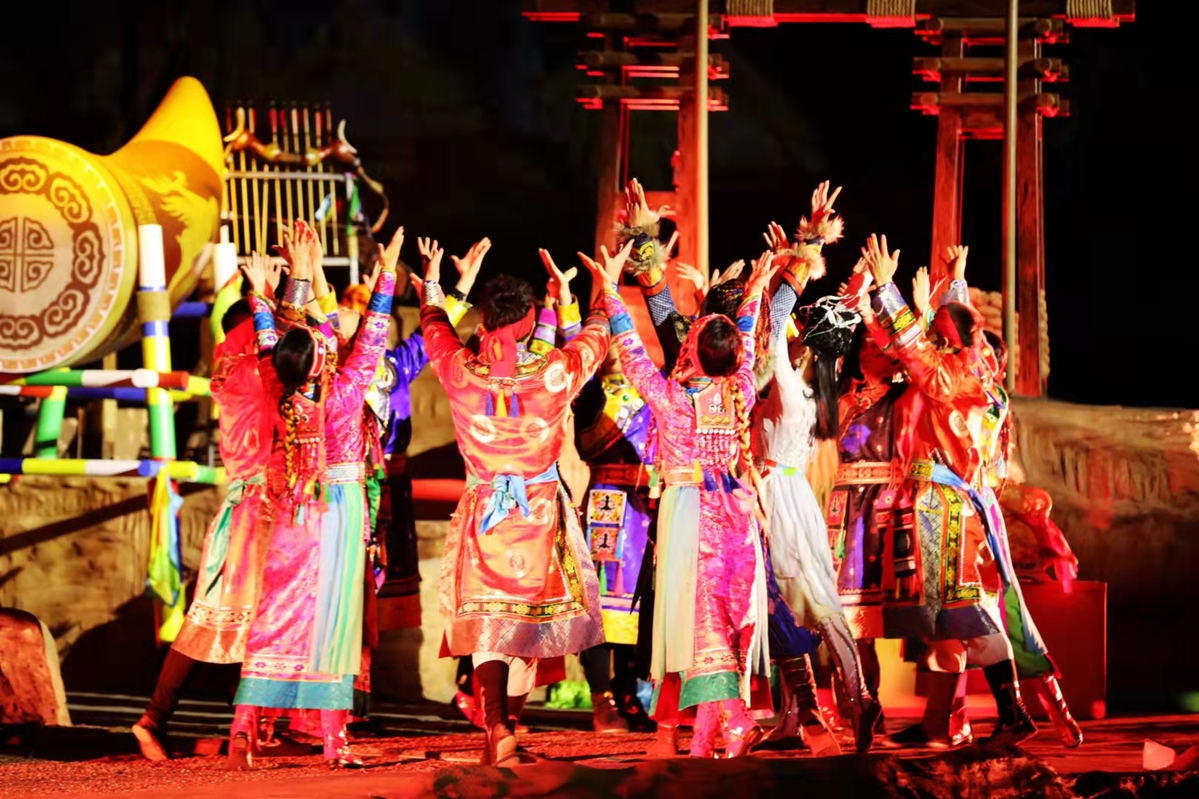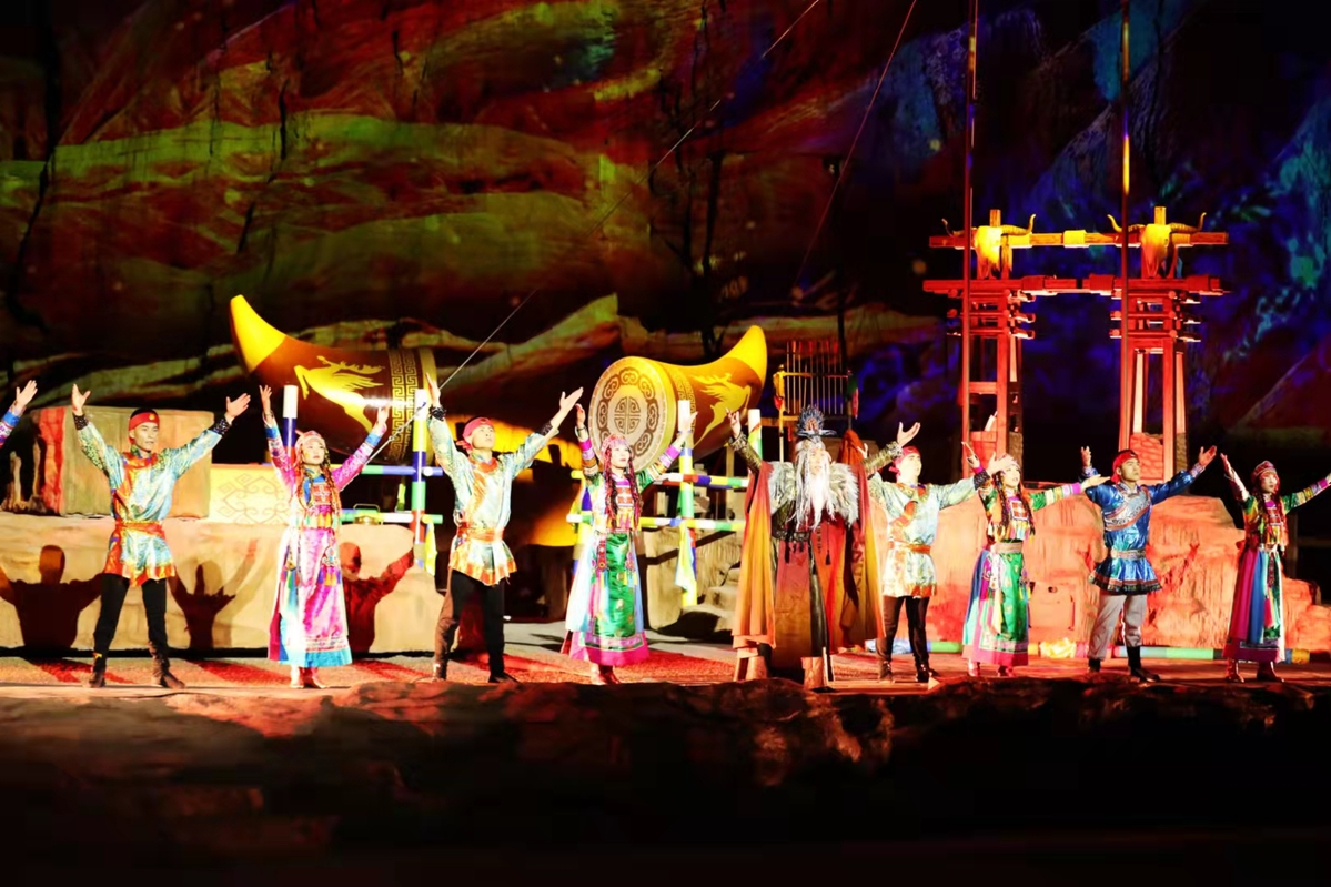 “阿蘭拉格達(dá)”裕固族語為“紅色的山”。光影演繹《阿蘭拉格達(dá)》以當(dāng)?shù)卦9套辶鱾鞯纳裨捁适赂木幎桑瑢⑵卟实は贾篮同F(xiàn)代藝術(shù)完美結(jié)合,以“沉浸”的藝術(shù)形式展現(xiàn),給游客帶來身臨其境的互動體驗享受。