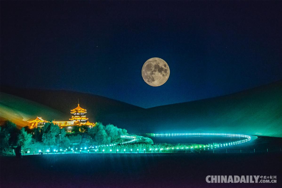 9月21日夜晚,一輪明月升起在大漠敦煌的上空,在中國傳統(tǒng)的中秋節(jié),甘肅敦煌月牙泉小鎮(zhèn)中心廣場舉辦了中秋拜月等民俗活動(dòng)。先舉行了仿古“拜月大典”。伴隨著深沉悠揚(yáng)的樂曲,身穿華麗漢服的參祭女子手捧月餅及各式貢品緩步登臺,在皓月銀輝中虔誠致祭;按照敦煌習(xí)俗,主祭三上香、三祭酒,并于月光與燭光映照之中,向月誦祝。按照傳統(tǒng)儀式祭拜禮成后,主祭將月餅與水果分發(fā)給現(xiàn)場拜月的市民游客,與大家共享中秋拜月祭品。隨后還進(jìn)行了中國傳統(tǒng)民族服裝——旗袍展示、漢服秀、歌舞演出等形式多樣的民俗活動(dòng)。當(dāng)日晚,小鎮(zhèn)人來人往非常熱鬧,眾多敦煌市民和游客參加拜月活動(dòng),受疫情影響,部分活動(dòng)在網(wǎng)上進(jìn)行,不少媒體人,對敦煌賞月、拜月活動(dòng)進(jìn)行了網(wǎng)絡(luò)直播。
