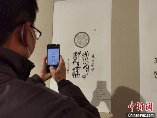 圖為觀展者用手機記錄傳拓技藝。 崔琳 攝