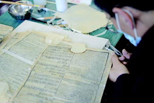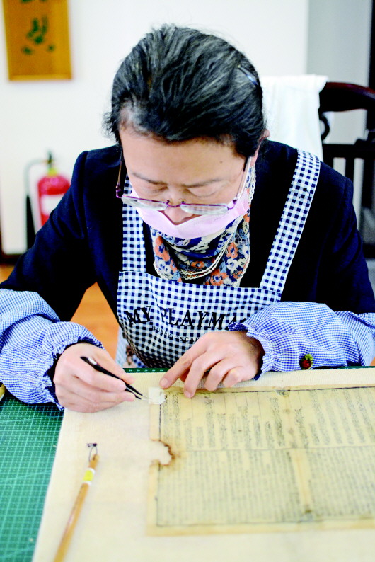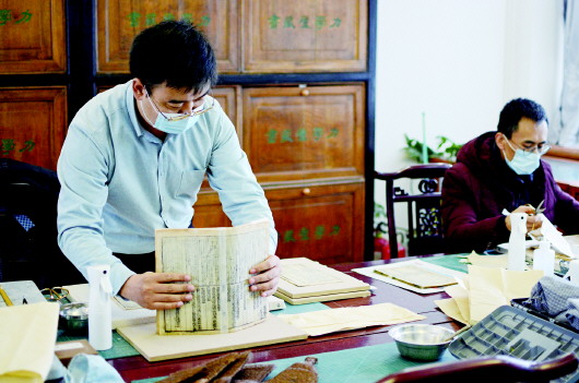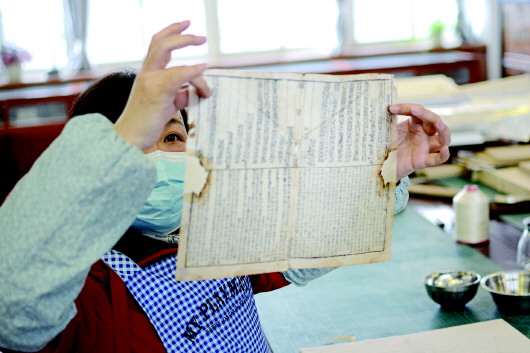 1月5日,記者來到市圖書館古籍部,工作人員正在對破損古籍進行全手工修復(fù)。