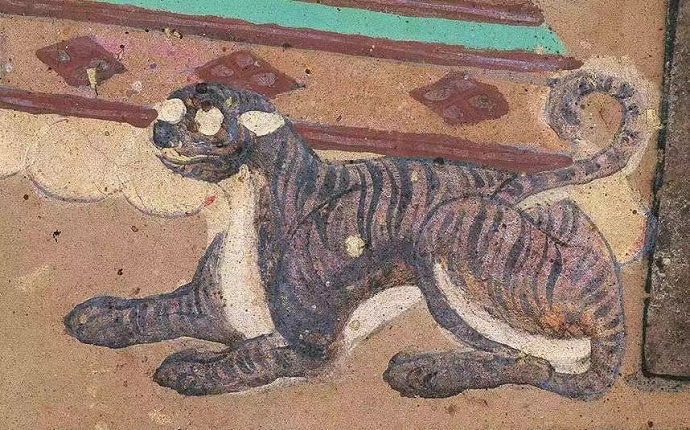 在人們的傳統(tǒng)印象中,老虎大多兇猛威嚴(yán)。但在世界文化遺產(chǎn)敦煌莫高窟,百獸之王造型“百變”,展現(xiàn)出千年前的生靈之美。