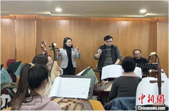 隴劇國家級傳承人竇鳳霞(左一)和徒弟們進行排練。(資料圖) 張煜曼 攝