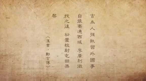 今天“甘肅簡牘之西域往事”的主人公鄭吉,《漢書》有其傳。為其作傳的班固在文中對(duì)鄭吉的評(píng)語中,有一句為我們耳熟能詳?shù)脑挘?/p>