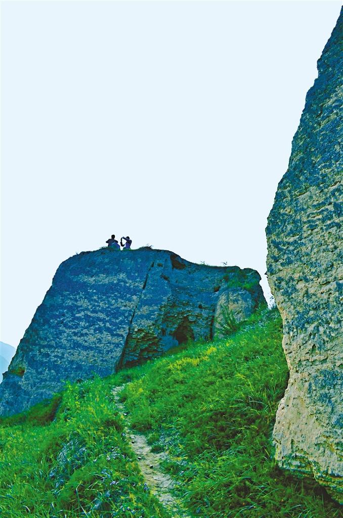 觀測點就選在了三岔鎮(zhèn)東坪上的古堡。由小路上山,道路崎嶇曲折,那座下臨無地、崔嵬的古堡越發(fā)顯得動人心魄。登上古堡殘存的仍然高達六七米的鼓樓,果然看到了古驛城的輪廓。在民居之間顯露著昔日的威勢。