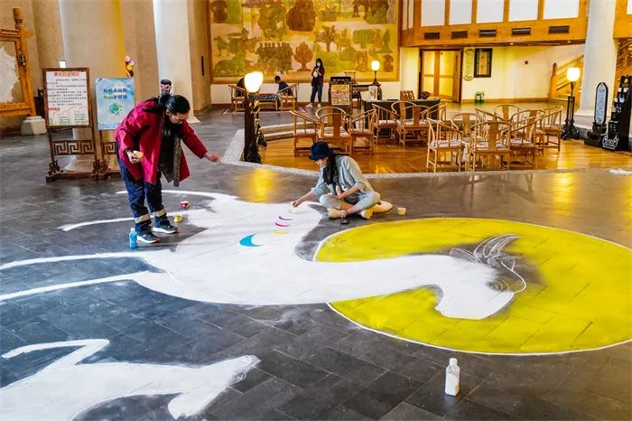 60平方米!大型九色鹿沙畫亮相敦煌