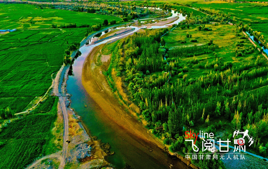 6月15日,位于張掖市甘州區(qū)靖安鄉(xiāng)、烏江鎮(zhèn)境內(nèi)的黑河兩岸,在夕陽的映照下綠意盎然,盡顯勃勃生機(jī),構(gòu)成了一幅綠色美景畫卷。