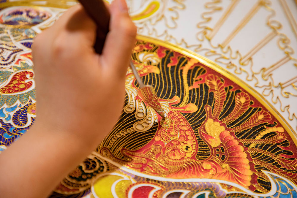 “我8歲跟隨伯父學(xué)習(xí)掐絲琺瑯工藝,一直夢(mèng)想著有一天能用琺瑯作畫(huà)。16歲那年,當(dāng)我在莫高窟看到精美絕倫的壁畫(huà)時(shí),創(chuàng)作熱情一下子就被點(diǎn)燃了。”李海明說(shuō)。