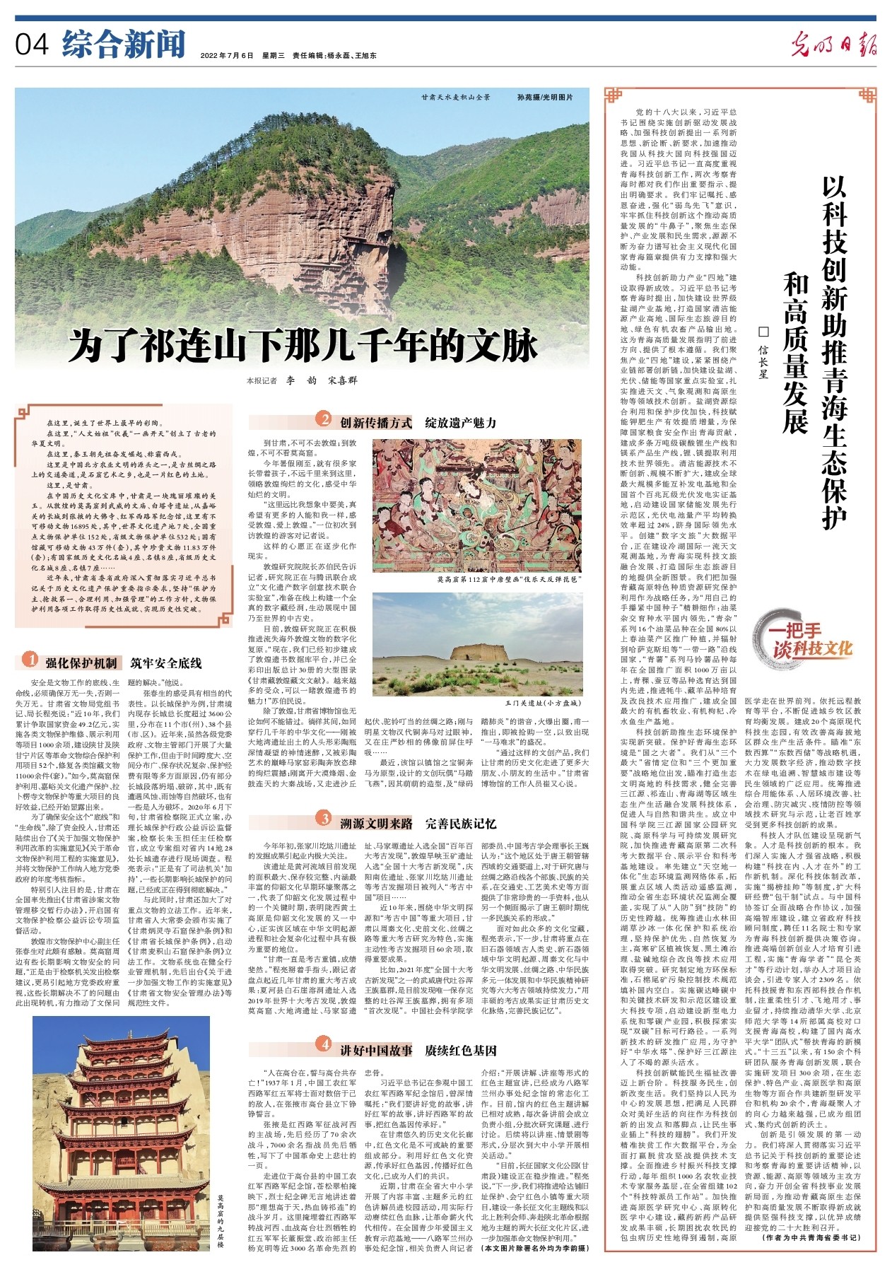 近年來,甘肅省委省政府深入貫徹落實習近平總書記關于歷史文化遺產保護重要指示要求,堅持“保護為主、搶救第一、合理利用、加強管理”的工作方針,文物保護利用各項工作取得歷史性成就、實現歷史性突破。