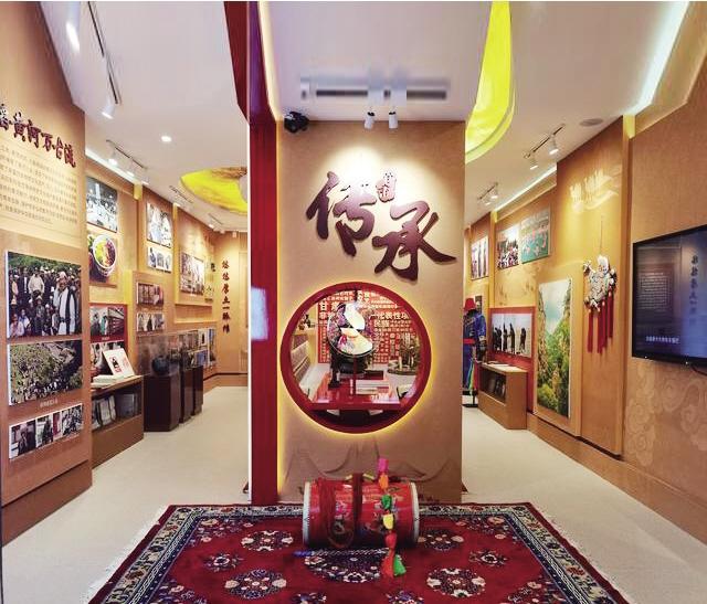 展廳由序言和“滔滔黃河萬古流”“悠悠厚土一脈傳”“交響絲路民族和”三個部分組成。其中,“滔滔黃河萬古流”展示了發(fā)源于黃河流域的花兒、蘭州黃河大水車制作技藝、蘭州牛肉面制作技藝、洮硯制作技藝等非遺代表性項目,彰顯了獨特的黃河魅力、地域文化和民族風(fēng)情。