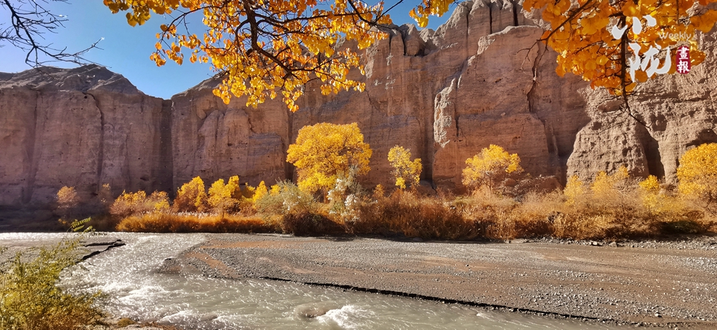 初冬時節(jié),這里的胡楊林五彩斑斕,金碧輝煌,黃燦燦的樹葉與藍(lán)天、白云相映成趣。在陽光的照耀下,金黃色的樹葉隨風(fēng)搖曳,肆意而優(yōu)雅,為秋天帶來幾分浪漫。身入林中,涼爽的空氣中洋溢著淡淡清香,像溫暖的秋陽,沁人心脾。