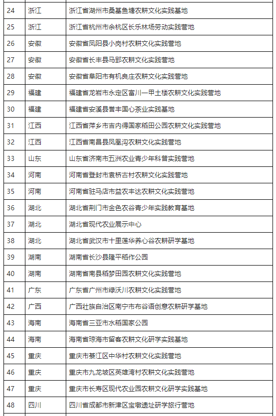 農(nóng)耕文化實踐營地推薦名單(第一批)