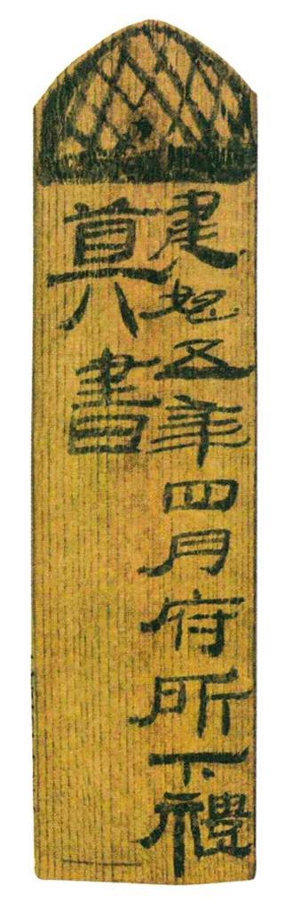 牘是比兩行還要寬,有的可寬至6厘米,長度多與普通簡相同,多為木制,用來寫信、契約或抄錄醫(yī)方、歷譜等,墓中發(fā)現(xiàn)的牘大多用來記錄隨葬的物品目錄。