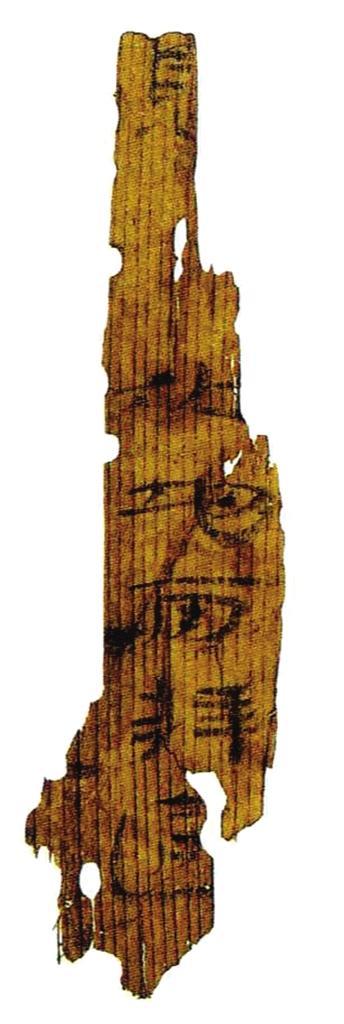 簡或稱札,一般長約23厘米,一般每簡寫一行字,寬度在0.5-1厘米左右,根據(jù)材質(zhì)不同,分為竹簡和木簡。我國南方盛產(chǎn)竹子,所以目前發(fā)現(xiàn)的多為竹簡,而西北地區(qū)氣候干燥,竹子較少,多為木質(zhì)簡。所用木材一般為胡楊、紅柳、松木三種。