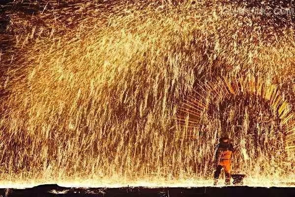 傳統(tǒng)“打鐵花”以老風(fēng)匣、小融鐵爐、耐火罐、陶勺、耐火鍋、木板等為工具;以生鐵、焦炭、木屑為原料,利用木板擊打熾熱的鐵液和木屑混合物,打出一朵朵千姿百態(tài)、爭奇斗艷、精彩紛呈、絢麗奪目的“鐵花”,由于其顏色吉祥,寓意美好,因此,農(nóng)村都喜歡通過“打鐵花”來祈盼來年風(fēng)調(diào)雨順,國泰民安。