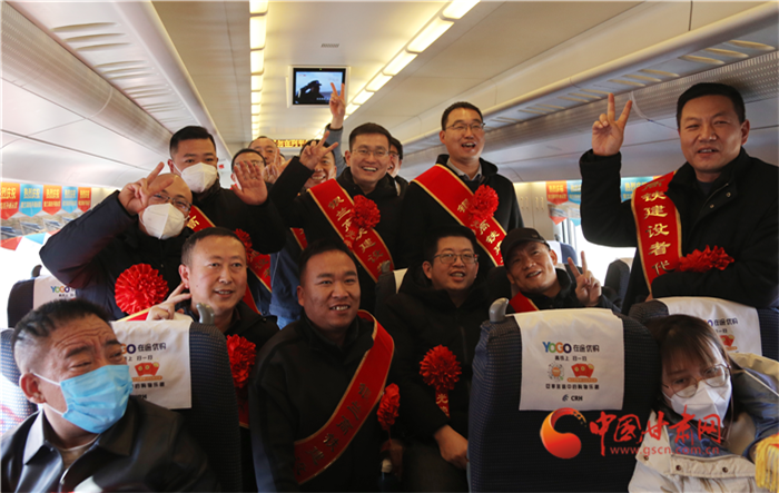 首趟列車上還特別安排了銀蘭高鐵中蘭段的建設者乘坐,4年多來,建設者夙夜在公,砥礪前行,用智慧和汗水讓藍圖成為現(xiàn)實,在這個特殊的日子他們格外開心。
