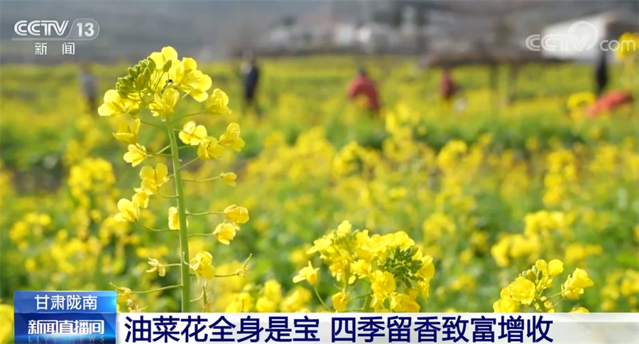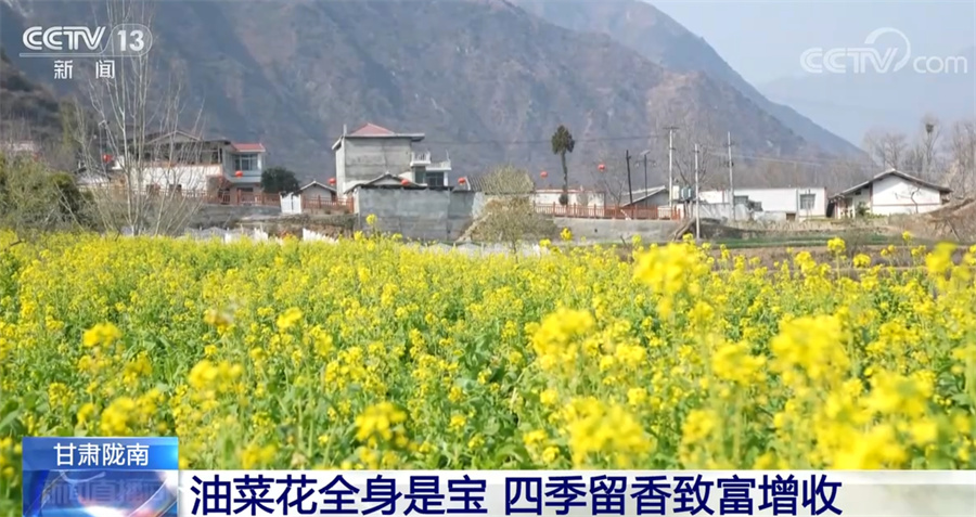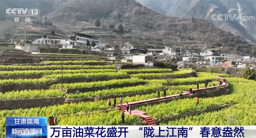 央視網(wǎng)消息:甘肅省地處西北腹地,但在其最南端的隴南市,山間的油菜花從臘月開始就逐漸開放,如今已經(jīng)進(jìn)入了盛花期,一派欣欣向榮的景象,給西北的初春增添了蓬勃生機。