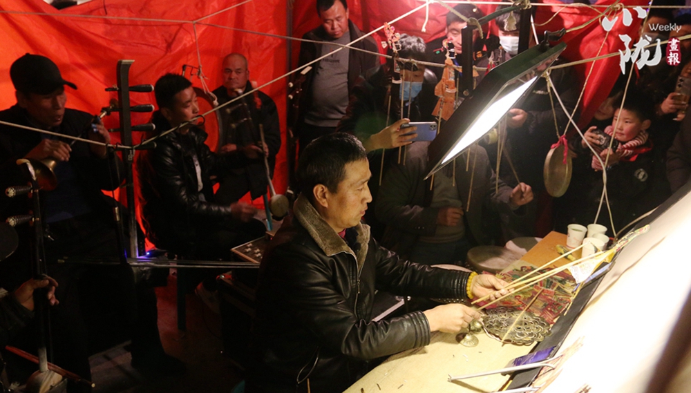 影子腔一般由三個(gè)人組成文樂人員,“本胡”兼“嗩吶”一人,“三弦”兼“海笛”一人,“四弦子”一人,武樂由一名鼓師,一名副手組成,演唱時(shí),鼓師左手擊甩板,右手敲“七星鑼”;副手左手打“螞蚱子”,右手擊“碰鈴”“手鑼”,武打動(dòng)作時(shí),鼓師掌握“暴鼓”“皮鼓”關(guān)副手敲“勾鑼”“手鑼”,文樂隊(duì)人員可帶“鐃鈸”等其他銅器,另外一名掌握“扦子”(也就是做影子)的人就是“戲母子”,五六個(gè)人就組成了一班人馬。