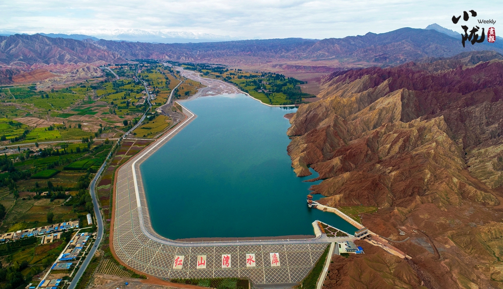 紅山灣水庫與丹霞國家地質(zhì)公園山水相映,展現(xiàn)了“戈壁水鄉(xiāng)”的生態(tài)和諧新形象。
