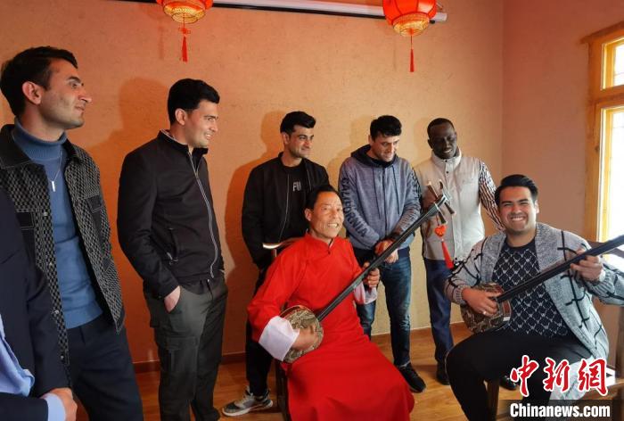 圖為5月9日,外籍游客體驗(yàn)三弦伴奏的“涼州賢孝”?!〈魑牟?nbsp;攝