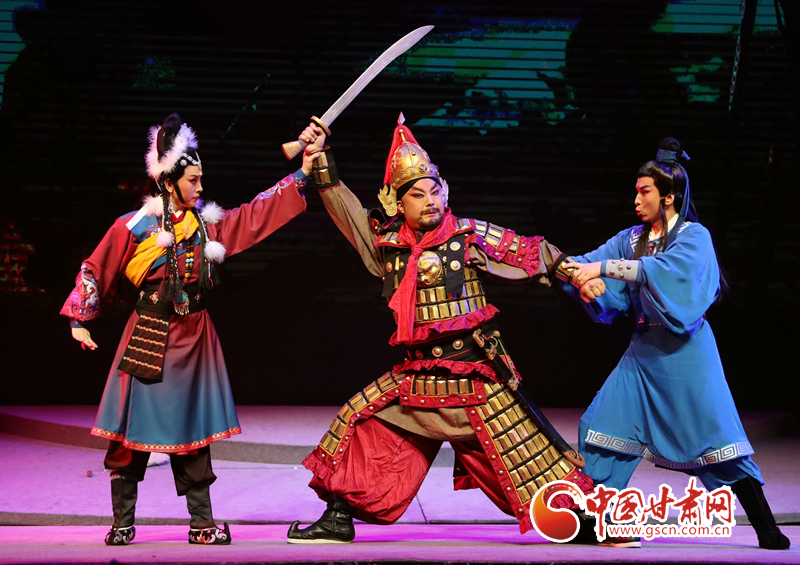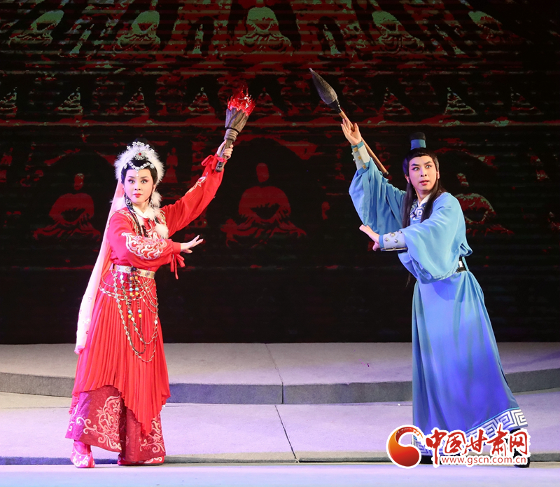 隴劇《敦煌》以回鶻族公主格麗莎的命運軌跡為結(jié)構(gòu)框架和發(fā)展脈絡(luò),描繪了一幅炎黃子孫在血與火的洗禮中,保護(hù)中華民族文化的宏偉畫卷,充分詮釋了敦煌文化“美人之美”“美美與共”的開放胸襟,“止戈為武”“協(xié)和萬邦”的和平思想,“和為貴”“和而不同”的東方智慧以及“自強不息”的奮斗精神、“舍生取義”犧牲精神。
