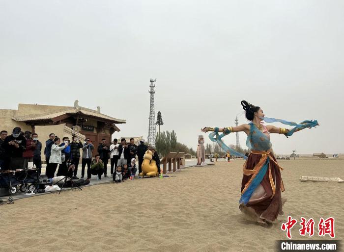 近年來,敦煌市委網(wǎng)信辦以“壁畫變裝秀”“飛天舞蹈短視頻”“漫說敦煌歷史”等形式,弘揚敦煌文化。6月以來,內地很多敦煌舞愛好者涌向敦煌,穿上以飛天服飾為代表的各種古裝,在絲綢之路旅游網(wǎng)紅“打卡地”鳴沙山月牙泉、玉門關、陽關等景區(qū)拍照、直播,各種不同的古裝服飾也為“大漠孤煙直”的絲路古道增添了無限色彩。