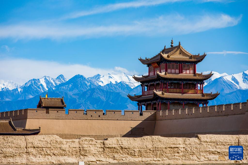 當(dāng)日,位于甘肅河西走廊的嘉峪關(guān)市在一場(chǎng)疾風(fēng)驟雨后,天空放晴,遠(yuǎn)處祁連雪山與嘉峪關(guān)關(guān)城交相輝映,構(gòu)成一幅壯美畫卷。