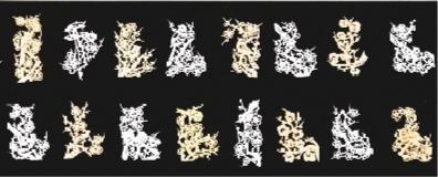 所剪的梅花枝干千姿百態(tài),變化多端,有粗有細(xì)、有長有短。梅花花朵有大有小,有的含苞未放,有的正在盛開。所剪的喜鵲也是形態(tài)多樣,有的在枝頭歡唱,有的在花間飛翔,有的竊竊私語,有的比翼雙棲,給人以喜氣又可愛的視覺效果。共分為8幀圖卷,分別為《寒梅吐艷》《喜梅報春》《一門喜事》《雙喜盈門》《喜事連連》《梅開五?!贰兜歉咄h(yuǎn)》《喜上眉梢》。