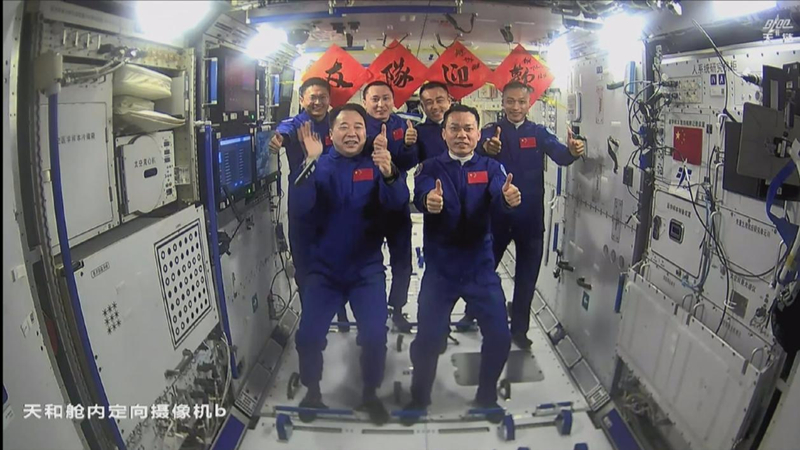 ?。?)三期并列:神舟17號與神舟16號兩個乘組會合,實現(xiàn)了我國三批航天員在空間站的首次大團圓。