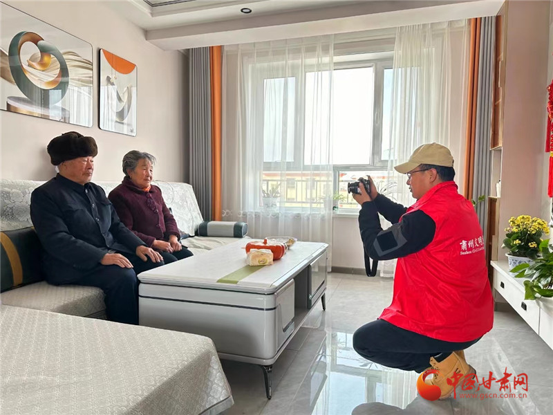 “大爺笑一笑,牽著大娘的手……”攝影志愿者們下村入戶,上門為村民拍攝全家福,用鏡頭為群眾定格幸福團(tuán)圓的瞬間,留住溫馨美好記憶。從選擇服裝到整理發(fā)型,從選取角度到調(diào)動情緒,志愿者們忙的不亦樂乎,在他們的引導(dǎo)和鼓勵下,老兩口由開始的緊張到后來的自信從容,一幕幕美好的生活片段被記錄了下來。