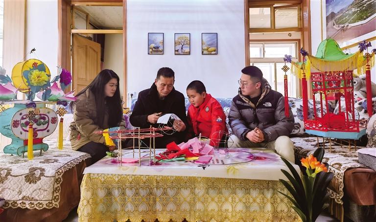 正月初十,記者走進魏世發(fā)家中,院中一盞盞精美的花燈擺放有序,色彩鮮艷、栩栩如生,呈現(xiàn)出皋蘭傳統(tǒng)手工花燈技藝的魅力。朱榮亮是石洞小學(xué)二年級學(xué)生,一次偶然的機會接觸到什川花燈,便產(chǎn)生了濃厚的興趣。他說:“以前見到花燈我就非常喜歡,今天媽媽專程帶我來到魏爺爺家學(xué)做花燈,非常有趣。以后有機會,我會帶著對花燈感興趣的同學(xué)來魏爺爺家跟他學(xué)做花燈。”