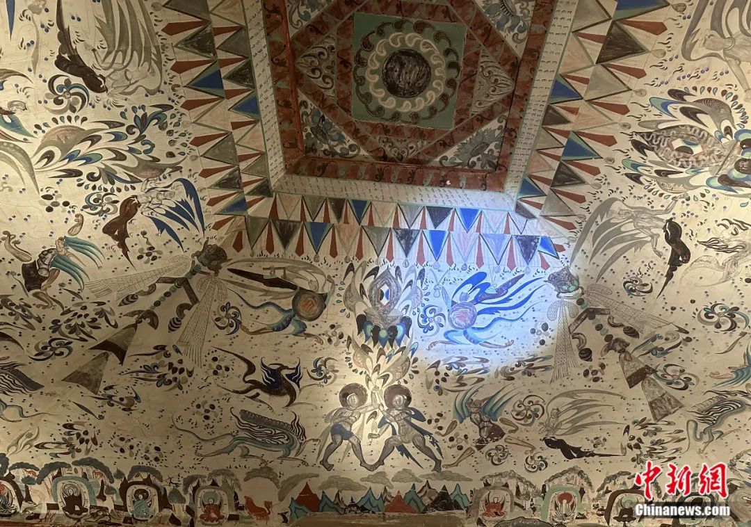 敦煌莫高窟第285窟(原大復(fù)制窟)窟頂?shù)姆?、女媧圖像。丁思 攝
