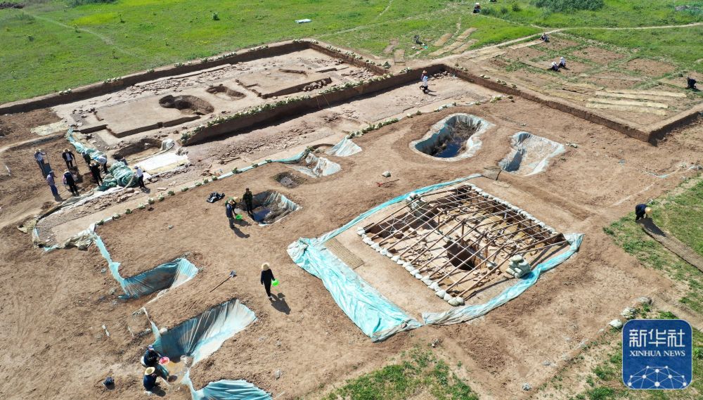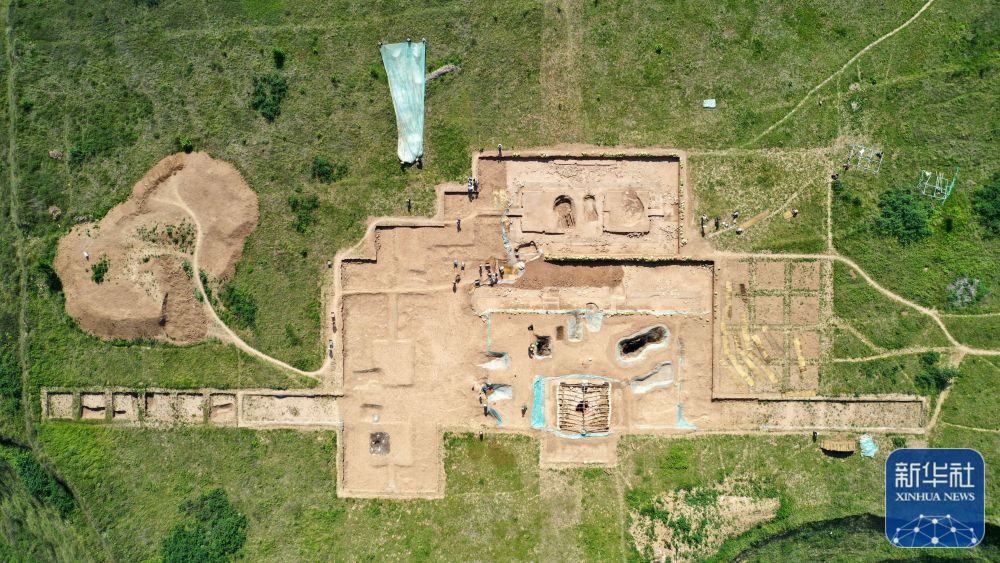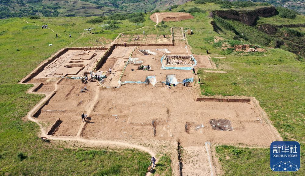 這是2022年6月10日拍攝的甘肅省隴南市禮縣四角坪遺址考古發(fā)掘現(xiàn)場(無人機照片)。新華社記者 郎兵兵 攝