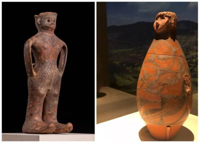 隴東少女作為甘肅的“顯眼包”之一,是曾在《國家寶藏》中出現(xiàn)過的“網(wǎng)紅”、甘肅省博物館鎮(zhèn)館之寶,它于1973年從秦安縣大地灣遺址出土。具有高度審美能力的“托尼”老師,設(shè)計了齊劉海發(fā)型,顯得很泰酷辣,圓鼓腹、平底,人們細(xì)看發(fā)現(xiàn),陶人的兩眼為圓孔洞,顯得目光深邃;鼻子呈蒜頭形,雕有鼻孔;嘴較小,微微張開,好像正在言語;兩耳外展,皆有穿孔;瓶體從上至下以黑彩飾三層大小相同、由弧線三角紋和斜線組成的二方連續(xù)圖案,以示華麗的衣物。另外,陶瓶人頭像的器口運(yùn)用了不同的制作手法,頭發(fā)、嘴系雕刻而成,鼻、臉是捏塑而成。人頭像五官整齊、面龐秀麗,器身造型典雅,與人物形象渾然一體,既是大地灣文化彩陶的代表作,也是中國史前集彩繪、雕塑與造型藝術(shù)于一身的杰作。估計任誰看一眼,都會被“她”的神秘和美麗所吸引吧。