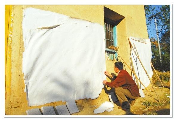 在李生武家的外墻上,我們看到一張張刷在墻上的構(gòu)樹(shù)皮紙,用手輕輕地?fù)崦鼈?,感覺(jué)附著了勞作的纖維顯得那么綿軟親切。
