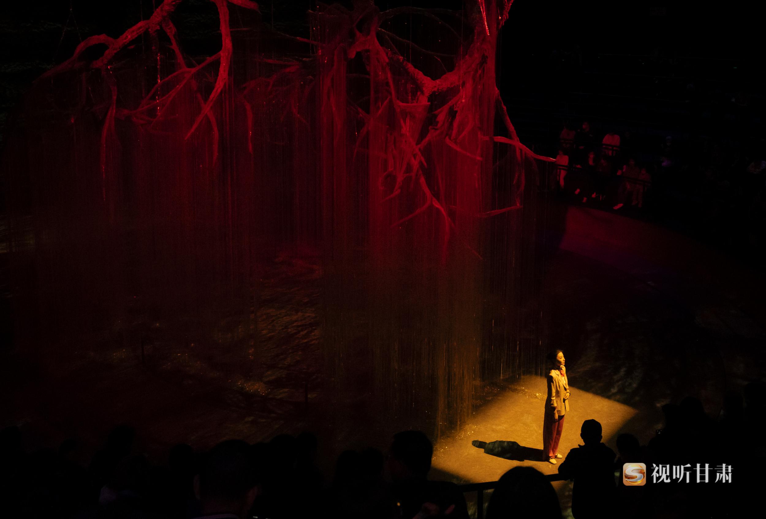 《天水千古秀》劇場內部設置了罕見的,超大型聯(lián)動舞臺機械裝置、3D影像裝置、移動巨幕裝置、首創(chuàng)了許多特技效果,引領觀眾進入壯觀瑰麗的幻境空間。不同于以往坐在觀眾席的觀演體驗,《天水千古秀》的觀眾是以邊走邊看的形式觀看演出,通過上、下兩條情景通道,在多維度的劇場空間內與歷史人物互動,感受身臨其境的奇妙體驗。演出采用邊行走邊觀看的形式,使觀眾感受到的不僅限于平面,而是在多維度表演空間內與歷史人物互動,感受身臨其境的奇妙體驗,運用現(xiàn)代的思考方式探索天水的遠古世界,來深入探索伏羲哲學“陰陽”世界觀,以“沉浸式”的方式讓觀眾更加直觀的感受歷史、貼近歷史。