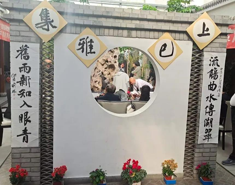 于是詞人騷客,寄快意于佳對(duì),詠雅事以妙韻。書家畫者,馳龍蛇于筆下,氤水墨于案前。各賦清幽,盡呈神妙,足紀(jì)此日雅集之盛也。復(fù)置美酒佳肴,環(huán)坐笑談,漫飲徐吟,足盡浮生偷閑之歡矣。
