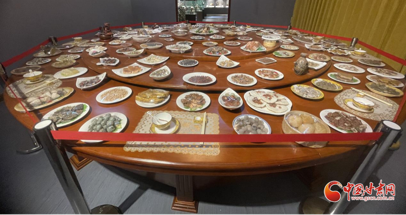最令我過目難忘的是“中華百家宴”,我曾經(jīng)在其他地方的玉器展上看到過“滿漢全席”,而玉器大多經(jīng)打磨雕琢,太過匠心。臨洮洮河石文化博物館的這桌“中華百家宴”,則基本是石頭原貌,在大自然的雕琢下呈現(xiàn)出獨特的形態(tài),更顯奇特曼妙。一碟碟的“珍饈佳肴”上覆保鮮膜,有剛剝了殼的軟嫩荔枝,有點綴著紅辣椒綠蔥花的連皮燉肉塊,有表面起酥的炸肉串......看在眼里就覺鮮香可口,令人垂涎欲滴。若不是隔離繩攔著,若不是每個碗碟上都有保鮮膜蓋著,看到忘乎所以,若是拿起筷子夾一塊大快朵頤,滿嘴牙怕要分崩離析。