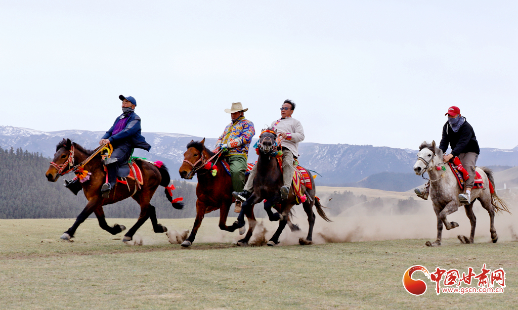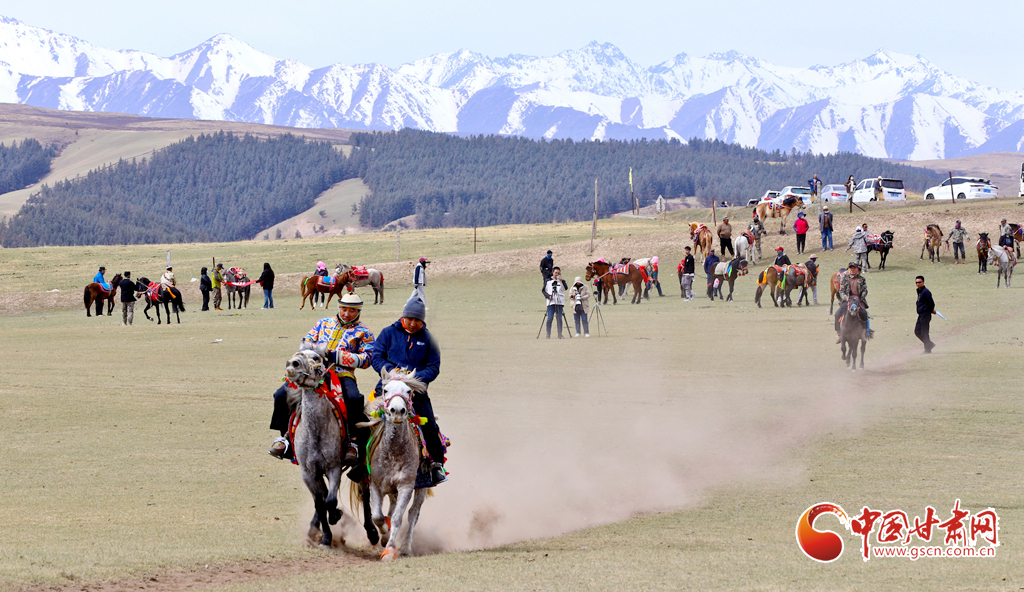 “五一”假期,甘肅省張掖市肅南裕固族自治縣康樂草原景區(qū)“民族大團(tuán)結(jié)”賽馬活動拉開帷幕,騎手們在祁連山下的康樂草原上展開了民族走馬、速度賽馬角逐,吸引了眾多游客前往觀賞賽馬和領(lǐng)略雪山、森林、草原為一體的祁連山美麗景色。