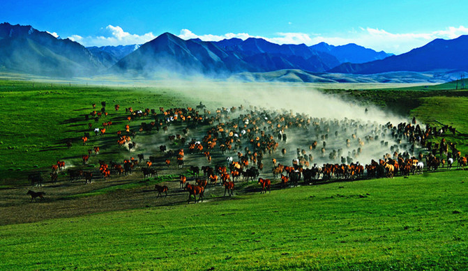 古往今來,文韻流長。山丹,從遠古走來,禹導弱水傳頌至今,四壩文化彰顯了距今約4000年的歷史厚重。蒼茫祁連,水草豐茂,駿馬奔騰,牛羊成群,烏孫、月氏、匈奴,民族交融,眾多馬背民族在這里形成了樂園,繁衍生息,牧馬筑夢,悠然自得。歷經(jīng)兩千多年部族紛爭、朝代興衰更迭,形成了獨特豐厚的歷史文化,積淀了蘊味深遠的地域個性。人們?yōu)闋帄Z這片風光旖旎、人杰地靈、物華天寶、活力四射的熱土,在戰(zhàn)爭與和平,文明與血腥之間發(fā)生過無數(shù)生與死的故事,血與火的較量。山丹,從漢唐走來,驃騎將軍霍去病越焉支山抗擊匈奴,橫掃千軍,封狼居胥,日月彪炳;漢武帝在這里建立馬場,培育神駒寶驥,馳騁沙場,保家衛(wèi)國;王維、李白、岑參、韋應物等文人墨客,抒懷寫意,留下了一批膾炙人口的華章。大漢雄風,盛唐遺韻在這里完美綻放;宋詞元曲,明清風雅在這里渲染成一幅多彩的畫卷。時過境遷,物是人非,歷史在這里留下了濃墨重彩。
