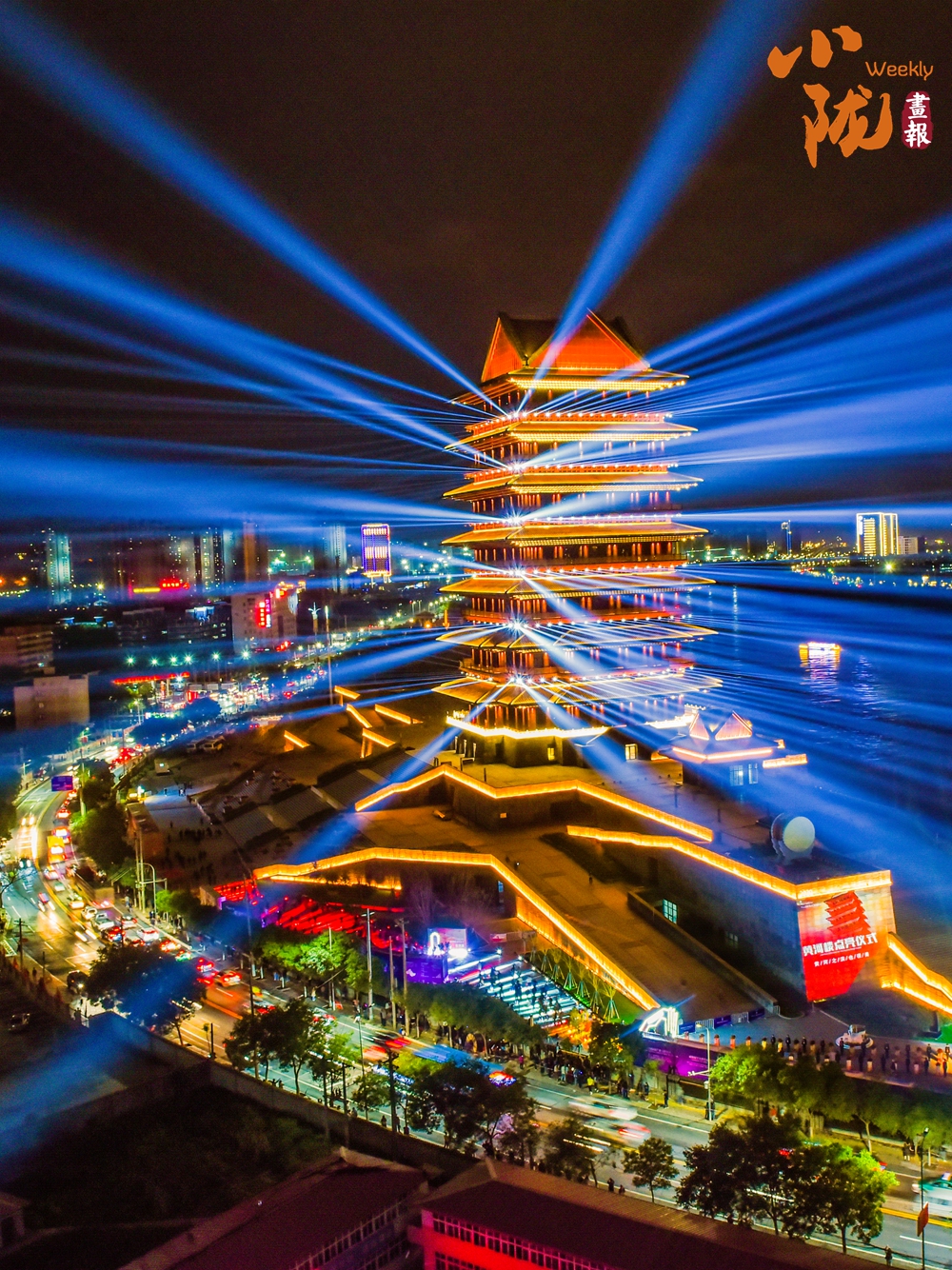 夜幕降臨,黃河之濱上的標志性建筑——蘭州黃河樓被點亮,顯得愈發(fā)美輪美奐。古風樓閣倒影在水中泛起粼粼波光,璀璨奪目的燈光點燃金城夜色。
