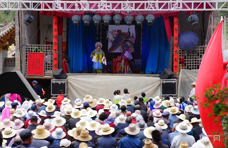 精彩的秦腔演出吸引群眾觀看(央廣網發(fā) 魏國江 攝)