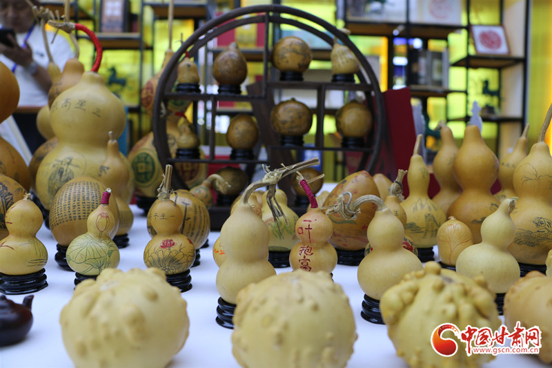 走進(jìn)第三十屆蘭洽會(huì)非遺文創(chuàng)館,陳氏雕刻葫蘆的第二代傳人陳兵正在展臺(tái)前為駐足參觀的群眾講解著刻葫蘆的過程。